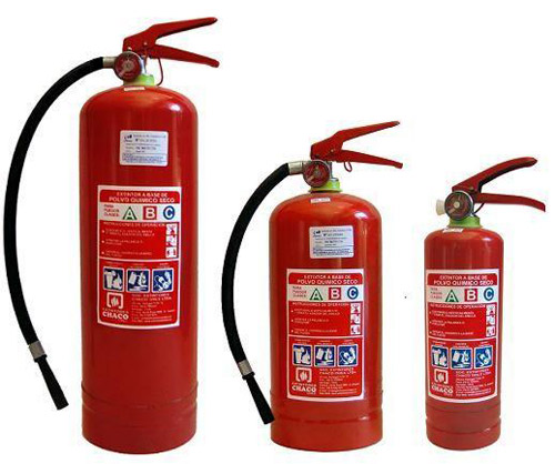 –Extintores de polvo químico seco: Una variante que funciona para incendios del tipo A, B, y C. Para que ese agente adquiera la fuerza para salir, se debe agitar antes de usar generando la presión interna. Actúan por sofocación, generando una sustancia pegajosa que se adhiere a la superficie de los sólidos.